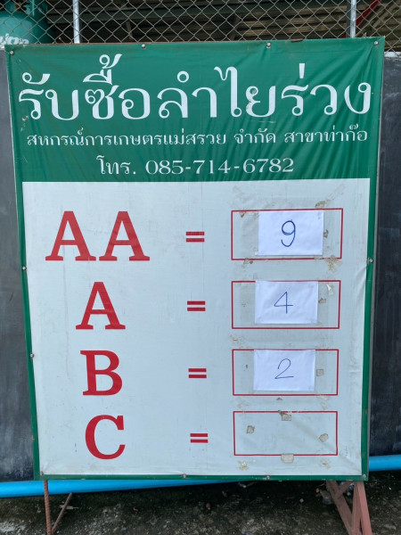 วันพฤหัสบดีที่ 7 สิงหาคม 2568 นายนรินทร์ศักดิ์ พนิตธรรมกูล สหกรณ์จังหวัดเชียงราย มอบหมายให้กลุ่มส่งเสริมสหกรณ์ 3 โดยนางสาวสุนิษา ผลากอง นักวิชาการสหกรณ์ปฏิบัติการ พร้อมด้วยนางสาวพัชรี มาลา นักวิชาการสหกรณ์ปฏิบัติการ นายธัชนนท์ ก๋าละ นักวิชาการสหกรณ์ และนางสาวณัฐวรินญา แก้ววิมล นักวิชาการสหกรณ์ เข้าติดตามธุรกิจรวบรวมผลผลิตลำไยของสหกรณ์การเกษตรแม่สรวย จำกัด ณ จุดรับซื้อที่ทำการสหกรณ์การเกษตรแม่สรวย จำกัด อำเภอแม่สรวย จังหวัดเชียงราย ราคาลำไยตามเกรด ณ วันที่ 7 สิงหาคม 2568 ดังนี้ AA กิโลกรัมละ 9 บาท, A กิโลกรัมละ 4 บาท และ B กิโลกรัมละ 2 บาท ซึ่งเป็นราคาที่สหกรณ์รับซื้อวันต่อวัน ทั้งนี้ได้แนะนำให้สหกรณ์ จัดเก็บข้อมูล การรับซื้อลำไยในแต่ละวัน เพื่อใช้เป็นข้อมูลประกอบการมีส่วนร่วมของสมาชิก ในการดำเนินธุรกิจรวบรวม(ลำไย)กับสหกรณ์ต่อไป
