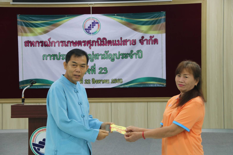 วันศุกร์ที่ 22 สิงหาคม 2568 นายนรินทร์ศักดิ์ พนิตธรรมกูล สหกรณ์จังหวัดเชียงราย เป็นประธานประชุมใหญ่สามัญประจำปี 2568 ครั้งที่ 23 สิ้นสุด 31 มีนาคม 2568 ของสหกรณ์การเกษตรศุภนิมิตแม่สาย จำกัด โดยมีนางสาวธัญญรัตน์ โพธิตา ผู้อำนวยการกลุ่มส่งเสริมสหกรณ์ 2 พร้อมด้วยเจ้าหน้าที่กลุ่มส่งเสริมสหกรณ์ 2 เข้าร่วมประชุมฯ ณ ที่ทำการสหกรณ์ฯ อำเภอแม่สาย จังหวัดเชียงราย โดยสหกรณ์จังหวัดเชียงรายได้มอบรางวัลสมาชิกผู้ถือหุ้นและซื้อสินค้าสูงสุดประจำปี 2568 ให้แก่สมาชิกสหกรณ์ฯ พร้อมติดตามผลการดำเนินงานของสกรณ์ และนางสาวธัญญรัตน์โพธิตา ผู้อำนวยการกลุ่มส่งเสริมสหกรณ์ 2 ได้ให้คำแนะนำที่ประชุมใหญ่เกี่ยวกับบทบาทหน้าที่ของสมาชิกสหกรณ์ การเข้าร่วมประชุมใหญ่ เกณฑ์การประเมินความเข้มแข็ง 4 มิติ เพื่อนำมาใช้ในการจัดชั้นความเข้มแข็งของสหกรณ์ และรับทราบผลการดำเนินงานประจำปีของสหกรณ์ การพิจารณาอนุมัติงบแสดงฐานะการเงินสิ้นสุดประจำปี 2568 อนุมัติการจัดสรรกำไรสุทธิประจำปี พิจารณาอนุมัติแผนการดำเนินงานและงบประมารายรับ - รายจ่ายประจำปี การกำหนดวงเงินกู้ยืมหรือการค้ำประกันประจำปี การแก้ไขเพิ่มเติมข้อบังคับสหกรณ์ การขับเคลื่อนแผนพัฒนาการสหกรณ์ ฉบับที่ 5 (พ.ศ. 2566-2570) ติดตามการขับเคลื่อนแผนกลยุทธ์ของสหกรณ์ และการมีส่วนร่วมในการดำเนินธุรกิจกับกลุ่มด้วยความระมัดระวังให้อยู่ภายใต้กรอบของกฎหมาย ข้อบังคับของกลุ่มโดยอาศัยมติของที่ประชุมของคณะกรรมการเป็นเครื่องมือในการขับเคลื่อนการดำเนินงานตามแผนงานประจำปีทีได้รับอนุมัติจากที่ประชุมใหญ่สามัญประจำปี เพื่อประโยชน์และเป็นที่พึ่งของมวลสมาชิกได้อย่างมั่นคง และยั่งยืนสืบไป