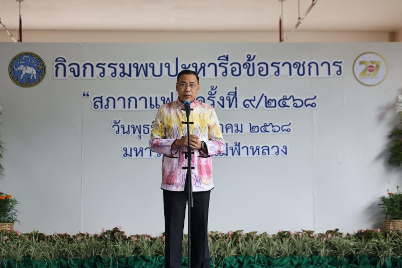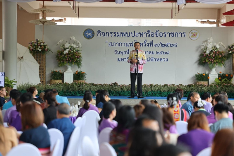 วันพุธที่ 27 สิงหาคม 2568 นายนรินทร์ศักดิ์ พนิตธรรมกูล สหกรณ์จังหวัดเชียงราย มอบหมายให้นายวิศรุต บำรุงศรี ผู้อำนวยการกลุ่มตรวจการสหกรณ์ เข้าร่วมกิจกรรมพบปะหารือข้อราชการ "สภากาแฟ" ครั้งที่ 9 ประจำปีงบประมาณ พ.ศ. 2568 ณ ลานกิจกรรมในร่ม ชั้น 5 อาคารพลเอกสำเภา ชูศรี มหาวิทยาลัยแม่ฟ้าหลวง ตำบลท่าสุด อำเภอเมืองเชียงราย จังหวัดเชียงราย โดยมีหน่วยงานในสังกัดกระทรวงศึกษาธิการ และกระทรวงอุดมศึกษา วิทยาศาสตร์ วิจัย และนวัตกรรม ร่วมเป็นเจ้าภาพ พร้อมกันนี้ นายชรินทร์ ทองสุข ผู้ว่าราชการจังหวัดเชียงราย ร่วมพบปะหารือข้อราชการกับหัวหน้าส่วนราชการ หัวหน้าหน่วยงานรัฐวิสาหกิจ และภาคเอกชนด้วย