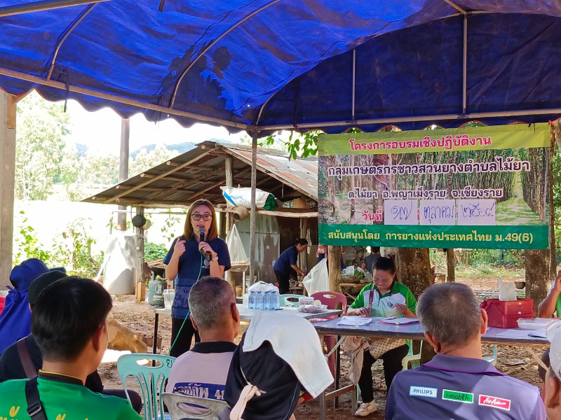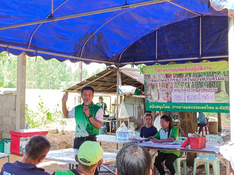 วันศุกร์ที่ 17 ตุลาคม 2568 นายนรินทร์ศักดิ์ พนิตธรรมกูล สหกรณ์จังหวัดเชียงราย ได้มอบหมายให้ นางสาวนงนุช พุทธเคน ผู้อำนวยการกลุ่มส่งเสริมสหกรณ์ 6 เขาให้การอบรมกลุ่มเกษตรกรชาวสวนยางตำบลไม้ยา ณ ศูนย์เรียนรู้เศรษฐกิจพอเพียงของกลุ่มฯ อำเภอพญาเม็งราย จังหวัดเชียงราย เพื่อให้ความรู้การน้อมนำหลักปรัชญาเศรษฐกิจพอเพียงมาประยุกต์ใช้กับองค์กรและสมาชิก รวมถึงให้ความรู้เกี่ยวกับอุดมการณ์ หลักการ และวิธีการสหกรณ์ เพื่อให้กลุ่มเกษตรกรใช้เป็นแนวทางในการพัฒนากลุ่มและสมาชิกอย่างยั่งยืน การอบรมครั้งนี้ได้ร่วมกับสำนักงานการยางแห่งประเทศไทย สาขาเชียงของ ในการให้ความรู้การขยายพันธุ์กล้ายางโดยวิธีติดตาเพื่อลดต้นทุนให้กับสมาชิกด้วย