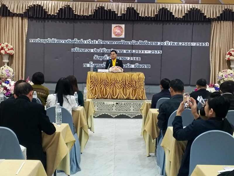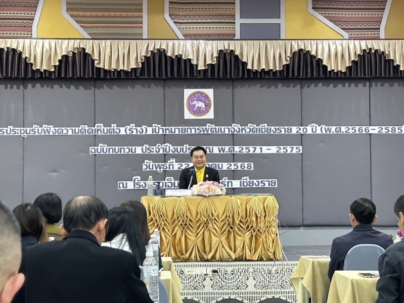 วันพุธที่ 22 ตุลาคม 2568 นายนรินทร์ศักดิ์ พนิตธรรมกูล สหกรณ์จังหวัดเชียงราย มอบหมายให้นางณัฐฐยา คำโป่ง ผู้อำนวยการกลุ่มส่งเสริมและพัฒนาธุรกิจสหกรณ์ เข้าร่วมการประชุมรับฟังความคิดเห็นต่อ (ร่าง) เป้าหมายการพัฒนาจังหวัดเชียงราย 20 ปี (พ.ศ. 2566-2585) ฉบับทบทวน ประจำปีงบประมาณ พ.ศ. 2571-2575 รับฟังความคิดเห็นจากผู้เข้าร่วมการประชุม และเพื่อสรุปภาพรวมการทบทวนและการับฟังความคิดเห็นต่อ (ร่าง) เป้าหมายการพัฒนาจังหวัดเชียงราย 20 ปี กลุ่มเป้าหมาย 300 คนประกอบด้วย ส่วนราชการส่วนภูมิภาพ ส่วนกลาง รัฐวิสาหกิจ องค์การบริหารส่วนท้องถิ่น ภาคเอกชน ภาคประชาสังคม ผู้แทนสถานบันการศึกษา ณ โรงแรมเอ็มบูทีค รีสอร์ท เชียงราย