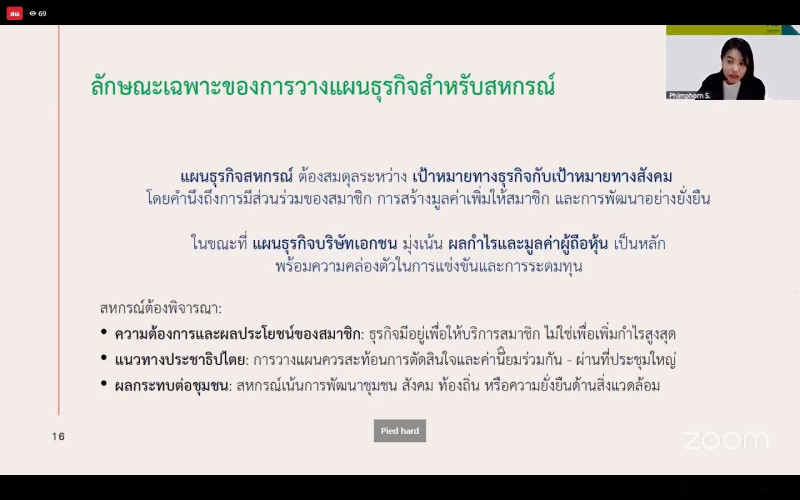 เข้าร่วมอบรมโครงการถ่ายทอดความรู้บุคลากรในการจัดทำแผนธุรกิจสหกรณ์ (กองทุนพัฒนาสหกรณ์) ผ่าระบบออนไลน์ Zoom Meeting