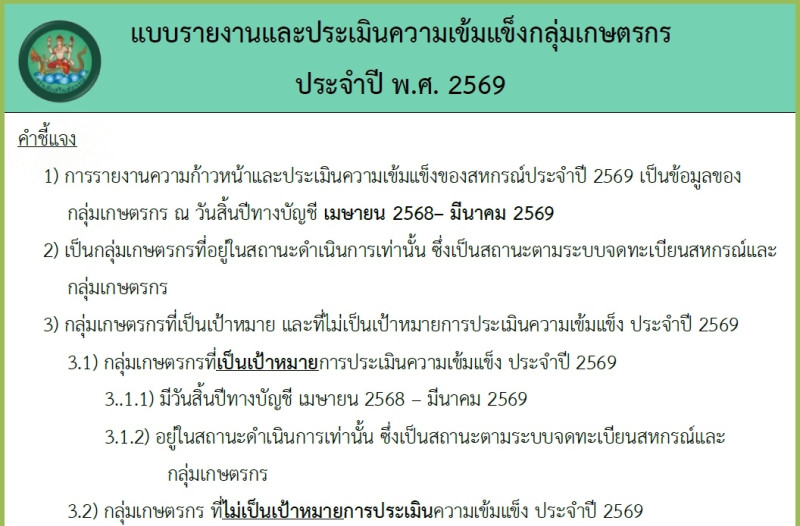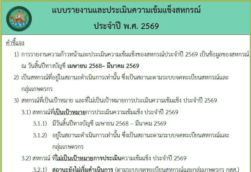 วันที่ 22 ธันวาคม 2568 นายนรินทร์ศักดิ์ พนิตธรรมกูล สหกรณ์จังหวัดเชียงราย มอบหมายให้นายสวัสดิ์ รมภิรันต์ ผู้อำนวยการกลุ่มจัดตั้งและส่งเสริมสหกรณ์ พร้อมด้วยเจ้าหน้าที่กลุ่มส่งเสริมสหกรณ์ 1 - 6 เข้าร่วมประชุมการชี้แจงซักซ้อมและทำความเข้าใจการใช้งานระบบรายงานและประเมินความเข้มแข็งสหกรณ์และกลุ่มเกษตรกร ประจำปี 2569 ผ่านระบบ Application Zoom มีวัตถุประสงค์เพื่อซักซ้อมและทำความเข้าใจการใช้งานระบบรายงานและประเมินความเข้มแข็งสหกรณ์และกลุ่มเกษตรกร ประจำปี 2569 ที่ประกอบด้วย 4 มิติ โดยเจ้าหน้าที่ส่งเสริมสหกรณ์ต้องทำการรายงานข้อมูล ในมิติที่ 1 และ 4 ซึ่งจะเปิดเจ้าหน้าที่กลุ่มส่งเสริมสหกรณ์รายงานผลในระบบในวันที่ 5 มกราคม 2569 ต่อไป