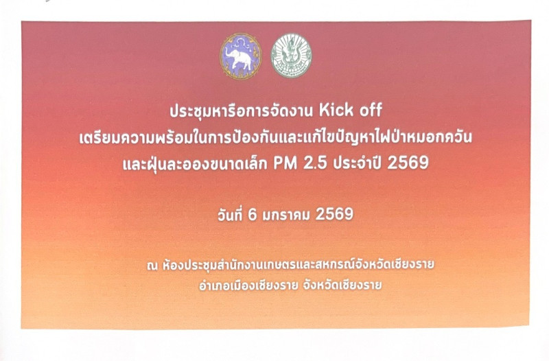 การประชุมหารือการจัดงาน Kick Off เตรียมความพร้อมในการป้องกันและแก้ไขปัญหาไฟป่าและหมอกควัน และฝุ่นละอองขนาดเล็ก PM 2.5 ประจำปี 2569