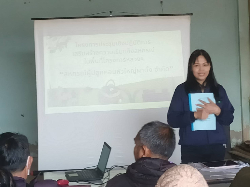 วันอังคารที่ 3 กุมภาพันธ์ 2569 นายนรินทร์ศักดิ์ พนิตธรรมกูล สหกรณ์จังหวัดเชียงราย มอบหมาย ให้กลุ่มส่งเสริมสหกรณ์ 5 โดย นางสาวเฉลิมพร วงศ์จักร์ ผู้อำนวยการกลุ่มส่งเสริมสหกรณ์ 5 พร้อมด้วยนางสาวปรารถนา ทำทาน นักวิชาการสหกรณ์ชำนาญการ นางจีริสุดา ไชยะ นักวิชาการสหกรณ์ และนางสาวสายสร้อย วงค์ชัย เจ้าพนักงานส่งเสริมสหกรณ์ ร่วมจัดโครงการประชุมเชิงปฏิบัติการ เพื่อพัฒนาศักยภาพและเสริมสร้างความเข้มแข็งของสหกรณ์ ให้ปิดบัญชีได้ ยกระดับความเข้มแข็ง และมีปริมาณธุรกิจเพิ่มขึ้น ของสหกรณ์/กลุ่มเกษตรกรในพื้นที่โครงการพัฒนาพื้นที่สูงอย่างยั่งยืน (โครงการหลวงและโครงการพัฒนาพื้นที่สูงแบบโครงการหลวง) ประจำปีงบประมาณ พ.ศ. 2569 ของสหกรณ์ผู้ปลูกหอมหัวใหญ่ผาตั้ง จำกัด ตำบลปอ อำเภอเวียงแก่น จังหวัดเชียงราย โดยมีวัตถุประสงค์ เพื่อส่งเสริมความรู้เกี่ยวกับอุดมการณ์ หลักการ และวิธีการสหกรณ์ แก่สมาชิกสหกรณ์ในพื้นที่โครงการหลวง เพื่อพัฒนาสหกรณ์ สู่ความเข้มแข็ง เพื่อส่งเสริม แนะนำ การดำเนินกิจกรรมของสหกรณ์ และการขยายตัวของปริมาณธุรกิจเพิ่มขึ้น กลุ่มเป้าหมาย ประกอบด้วย คณะกรรมการดำเนินการ สมาชิก จำนวน 20 ราย การดำเนินการ ตามโครงการในครั้งนี้ได้รับความร่วมมือจากสมาชิกสหกรณ์เป็นอย่างดี
