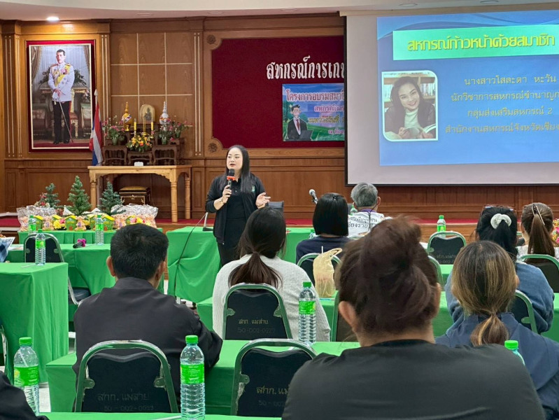 วันพฤหัสบดีที่ 12 กุมภาพันธ์ 2569 นายนรินทร์ศักดิ์ พนิตธรรมกูล สหกรณ์จังหวัดเชียงราย มอบหมายให้กลุ่มส่งเสริมสหกรณ์ 2 โดยนางสาวธัญญรัตน์ โพธิตา ผู้อำนวยการกลุ่มส่งเสริมสหกรณ์ 2 พร้อมด้วยนางสาวโสละดา หะวัน นักวิชาการสหกรณ์ชำนาญการ และนางสาววาสนา สบบง นักวิชาการสหกรณ์ ร่วมเป็นวิทยากรอบรมให้ความรู้แก่สมาชิกใหม่ ของสหกรณ์การเกษตรแม่สาย จำกัด อำเภอแม่สาย จังหวัดเชียงราย มีสมาชิกเข้าร่วมรับการอบรม จำนวน 75 ราย เพื่อให้สมาชิกได้รับความรู้เกี่ยวกับประวัติของสหกรณ์ หลักการ อุดมการณ์ และวิธีการสหกรณ์ ตลอดจนสิทธิ และหน้าที่ของการเป็นสมาชิกสหกรณ์ และระเบียบ ข้อบังคับ และกฎหมายที่เกี่ยวข้องกับการดำเนินงานของสหกรณ์