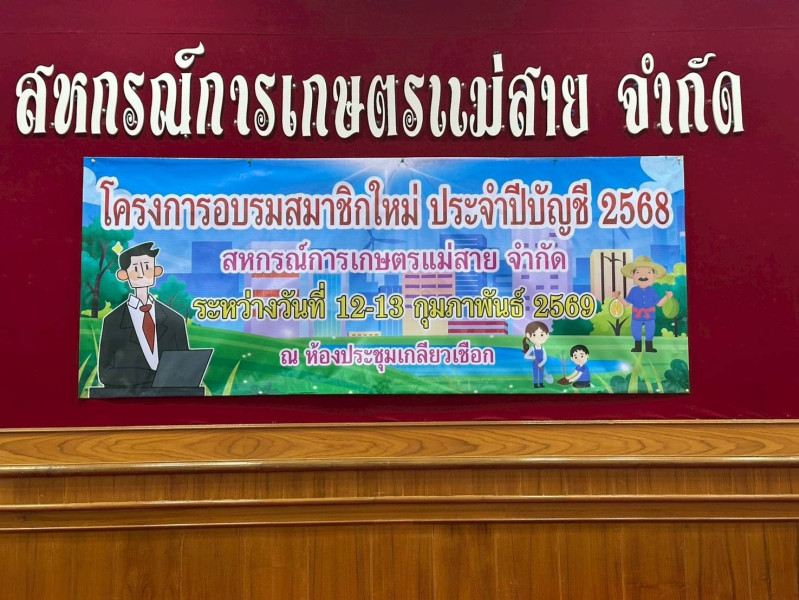 ร่วมเป็นวิทยากรอบรมสมาชิกใหม่ สหกรณ์การเกษตรแม่สาย จำกัด ประจำปี 2569