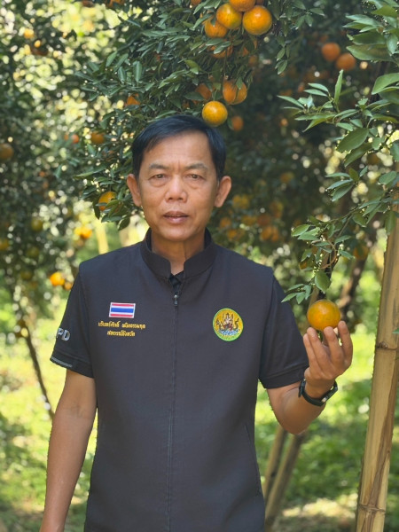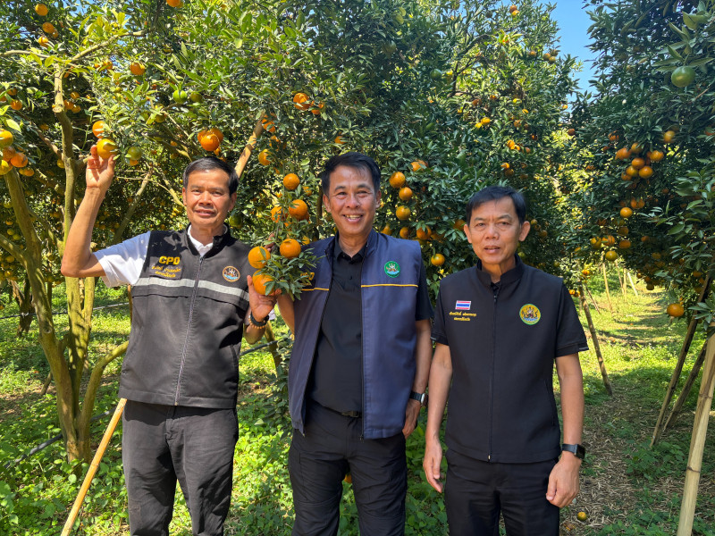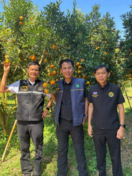 สหกรณ์จังหวัดเชียงราย ติดตามลงพื้นที่เยี่ยมชมการจัดการสวนส้มปลอดภัยตามมาตรฐาน GAP ของประธานกลุ่มเกษตรกรทำไร่โป่งน้ำร้อน ตำบลโป่งน้ำร้อน อำเภอฝาง จังหวัดเชียงใหม่