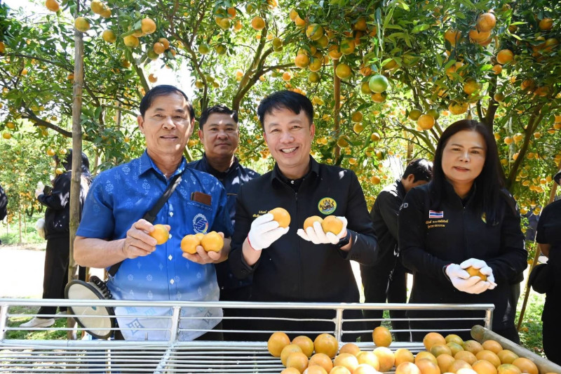 วันที่ 12 กุมภาพันธ์ 2569 นายนรินทร์ศักดิ์ พนิตธรรมกูล สหกรณ์จังหวัดเชียงราย ติดตามลงพื้นที่เยี่ยมชมการจัดการสวนส้มปลอดภัยตามมาตรฐาน GAP ของนายก๋องแก้ว เรือนใจ ประธานกลุ่มเกษตรกรทำไร่โป่งน้ำร้อน ตำบลโป่งน้ำร้อน อำเภอฝาง จังหวัดเชียงใหม่ พร้อมด้วยนายนิรันดร์ มูลธิดา อธิบดีกรมส่งเสริมสหกรณ์ พร้อมด้วย นายณฤทธิ์ บุญชัย รองอธิบดีกรมส่งเสริมสหกรณ์ และคณะผู้บริหารกรมส่งเสริมสหกรณ์ ลงพื้นที่เยี่ยมชมการจัดการสวนส้มปลอดภัยตามมาตรฐาน GAP ของนายก๋องแก้ว เรือนใจ ประธานกลุ่มเกษตรกรทำไร่โป่งน้ำร้อน ตำบลโป่งน้ำร้อน อำเภอฝาง จังหวัดเชียงใหม่ โดยรับฟังเรื่องราวการทำสวนส้มสายน้ำผึ้งจากเจ้าของสวน การดูแลรักษา การรวบรวมผลผลิตและการจำหน่ายสู่ตลาดปลายทาง ได้เยี่ยมชมกระบวนการร่อนส้ม คัดผลผลิตตามขนาด กระบวนการบรรจุหีบห่อเพื่อส่งลูกค้าปลายทาง อีกด้วย