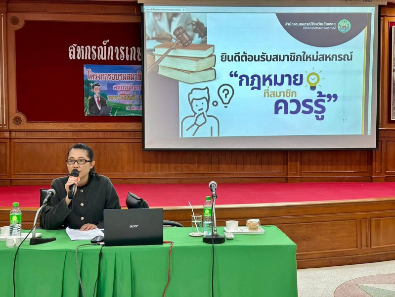วันที่ 13 กุมภาพันธ์ 2569 นายนรินทร์ศักดิ์ พนิตธรรมกูล สหกรณ์จังหวัดเชียงราย มอบหมายให้กลุ่มส่งเสริมสหกรณ์ 2 โดยนางสาวธัญญรัตน์ โพธิตา ผู้อำนวยการกลุ่มส่งเสริมสหกรณ์ 2 พร้อมด้วยนางสาวโสละดา หะวัน นักวิชาการสหกรณ์ชำนาญการ ร่วมเป็นวิทยากรอบรมให้ความรู้แก่สมาชิกใหม่ ของสหกรณ์การเกษตรแม่สาย จำกัด ได้ให้ความรู้แก่สมาชิกผู้เข้าร่วมอบรมเกี่ยวกับประวัติของสหกรณ์ หลักการ อุดมการณ์ และวิธีการสหกรณ์ ตลอดจนสิทธิ และหน้าที่ของการเป็นสมาชิกสหกรณ์ และว่าที่ รต.หญิง วาริณี ฟูนัน นิติกรกลุ่มตรวจการสหกรณ์ ร่วมเป็นวิทยากรอบรมให้ความรู้แก่สมาชิกใหม่ในเรื่องของกฎหมายที่สมาชิกสหกรณ์ควรรู้ สัญญากู้ยืมเงินตามกฎหมาย และสาระสำคัญของกฎหมายค้ำประกันและหลักประกันก่อนเซ็นค้ำประกัน เพื่อให้สมาชิกมีความเข้าใจกฎหมายเหล่านี้จะช่วยให้สมาชิกปกป้องสิทธิของตนเอง และส่งเสริมให้สหกรณ์ดำเนินกิจการได้อย่างโปร่งใส และระเบียบ ข้อบังคับและกฎหมายที่เกี่ยวข้องกับการดำเนินงานของสหกรณ์ โดยมีสมาชิกเข้าร่วมรับการอบรม จำนวน 75 ราย ณ สำนักงานสหกรณ์การเกษตรแม่สาย จำกัด อำเภอแม่สาย จังหวัดเชียงราย