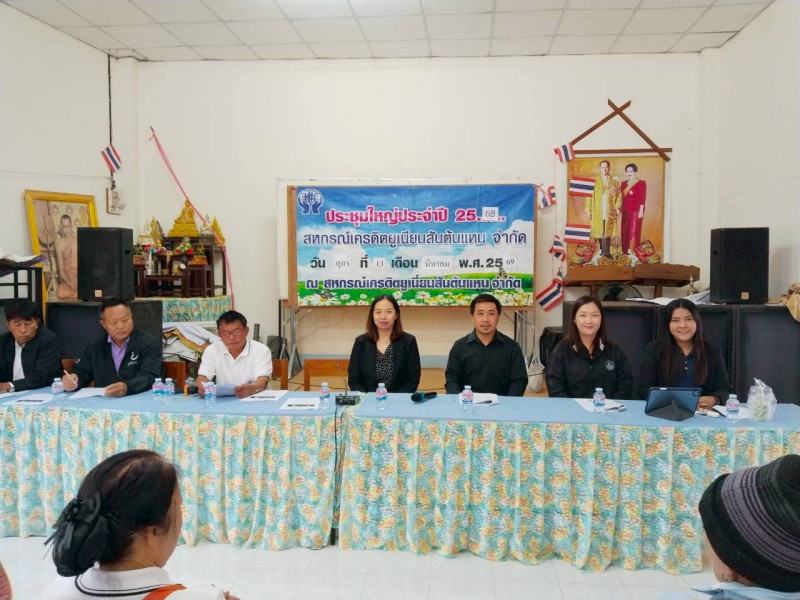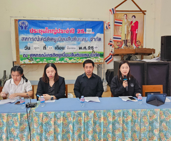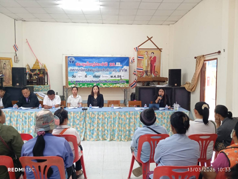 วันศุกร์ที่ 13 มีนาคม 2569 นายนรินทร์ศักดิ์ พนิตธรรมกูล สหกรณ์จังหวัดเชียงราย มอบหมายให้กลุ่มส่งเสริมสหกรณ์ 4 โดยนายปุญชรัสมิ์ จำรัส นักวิชาการสหกรณ์ชำนาญการ พร้อมด้วยนางสาววันวิสาข์ คงมี เจ้าพนักงานส่งเสริมสหกรณ์ เข้าร่วมประชุมใหญ่สามัญประจำปีสิ้นสุด 31 ธันวาคม 2568 สหกรณ์เครดิตยูเนี่ยนสันต้นแหน จำกัด ณ ที่ทำการสหกรณ์ฯ อำเภอพาน จังหวัดเชียงราย เพื่อรับทราบผลการดำเนินงาน ของสหกรณ์ประจำปี 2568 และการพิจารณาอนุมัติงบฐานะการเงิน, การจัดสรรกำไรสุทธิประจำปี, การกำหนดแผนการดำเนินงานของสหกรณ์ ประมาณการรายได้ รายจ่าย, การกำหนดวงเงินกู้ยืมหรือการค้ำประกันประจำปี ได้ให้คำแนะนำเรื่องการให้ความสำคัญในการเข้าร่วมประชุมใหญ่ ทั้งนี้ได้แจ้งผลประเมินระดับความเข้มแข็งของสหกรณ์ปี 2568 ตามเกณฑ์ประเมิน 4 มิติ พร้อมทั้งแนะนำให้สมาชิกสหกรณ์ปฏิบัติตามระเบียบ และข้อบังคับของสหกรณ์อย่างเคร่งครัด