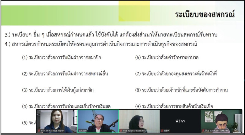 เข้าร่วมอบรมเชิงปฏิบัติการ หลักสูตร “การเงิน การบัญชี สำหรับการส่งเสริมสหกรณ์” ผ่านระบบทางไกลออนไลน์ (Video Conference)