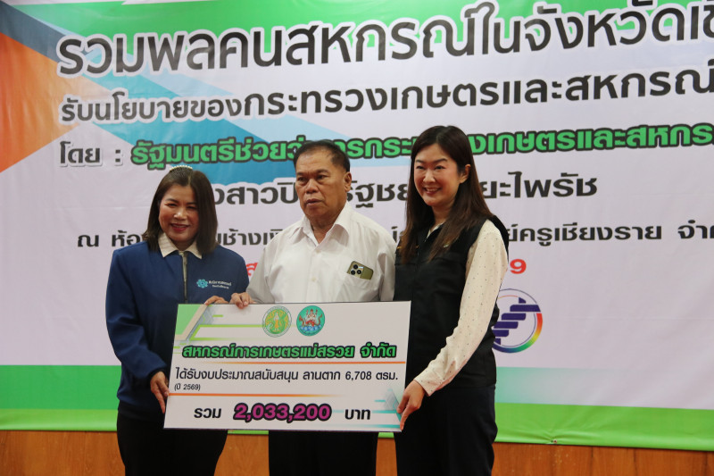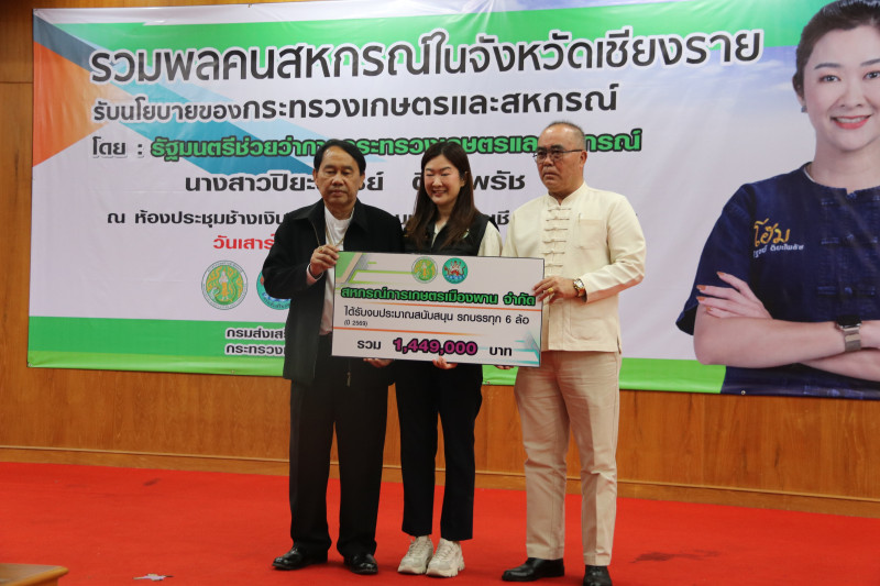วันที่ 25 เมษายน 2569 นายนรินทร์ศักดิ์ พนิตธรรมกูล สหกรณ์จังหวัดเชียงราย พร้อมด้วยเจ้าหน้าที่สำนักงานสหกรณ์จังหวัดเชียงราย จัดงาน “รวมพลคนสหกรณ์ในจังหวัดเชียงราย” โดยได้รับเกียรติจากนางสาวปิยะรัฐชย์ ติยะไพรัช รัฐมนตรีช่วยว่าการกระทรวงเกษตรและสหกรณ์ มาเป็นประธานเปิดงานฯ พร้อมด้วยนายนิรันดร์ มูลธิดา อธิบดีกรมส่งเสริมสหกรณ์ และคณะผู้บริหารกรมส่งเสริมสหกรณ์ และคณะผู้บริหารกระทรวงเกษตรและสหกรณ์ ณ ห้องประชุมสหกรณ์ออมทรัพย์ครูเชียงราย จำกัด ตำบลนางแล อำเภอเมืองเชียงราย จังหวัดเชียงราย