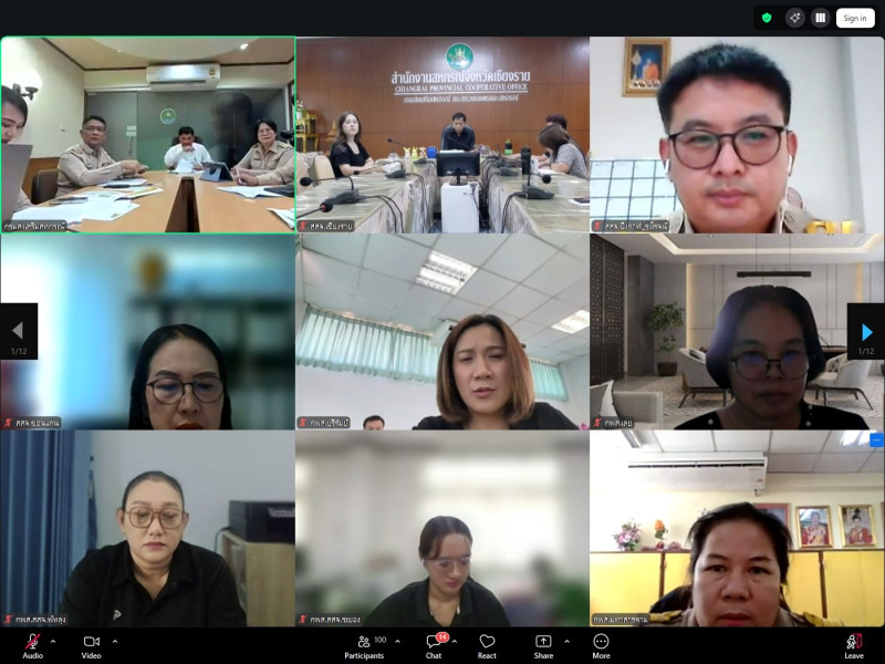 วันจันทร์ที่ 27 เมษายน 2569 เวลา 10.00 น. นายนรินทร์ศักดิ์ พนิตธรรมกูล สหกรณ์จังหวัดเชียงราย พร้อมด้วยกลุ่มส่งเสริมและพัฒนาธุรกิจสหกรณ์ ร่วมประชุมชี้เเจงซักซ้อมการใช้งานระบบรายงานผลการรวบรวมยางพาราของสหกรณ์เเละกลุ่มเกษตรกร ผ่านทางระบบ zoom Clound Meeting โดยมีนายณฤทธิ์ บุญชัย รองอธิบดีกรมส่งเสริมสหกรณ์ เป็นประธานการประชุมฯ ซึ่งมีวัตถุประสงค์เพื่อให้การรายงานข้อมูลการรวบรวมยางพาราของสหกรณ์เเละกลุ่มเกษตรกรภายใต้การกำกับดูแลของกรมส่งเสริมสหกรณ์เป็นไปด้วยความเรียบร้อย มีประสิทธิภาพ และข้อมูลปัจจุบันสำหรับใช้ในการเฝ้าระวังและแก้ไขปัญหา ต่อไป